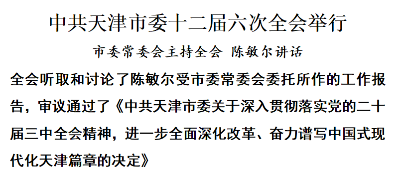 (2024年8月25日中國共產(chǎn)黨天津市第十二屆委員會(huì )第六次全體會(huì )議通過(guò))