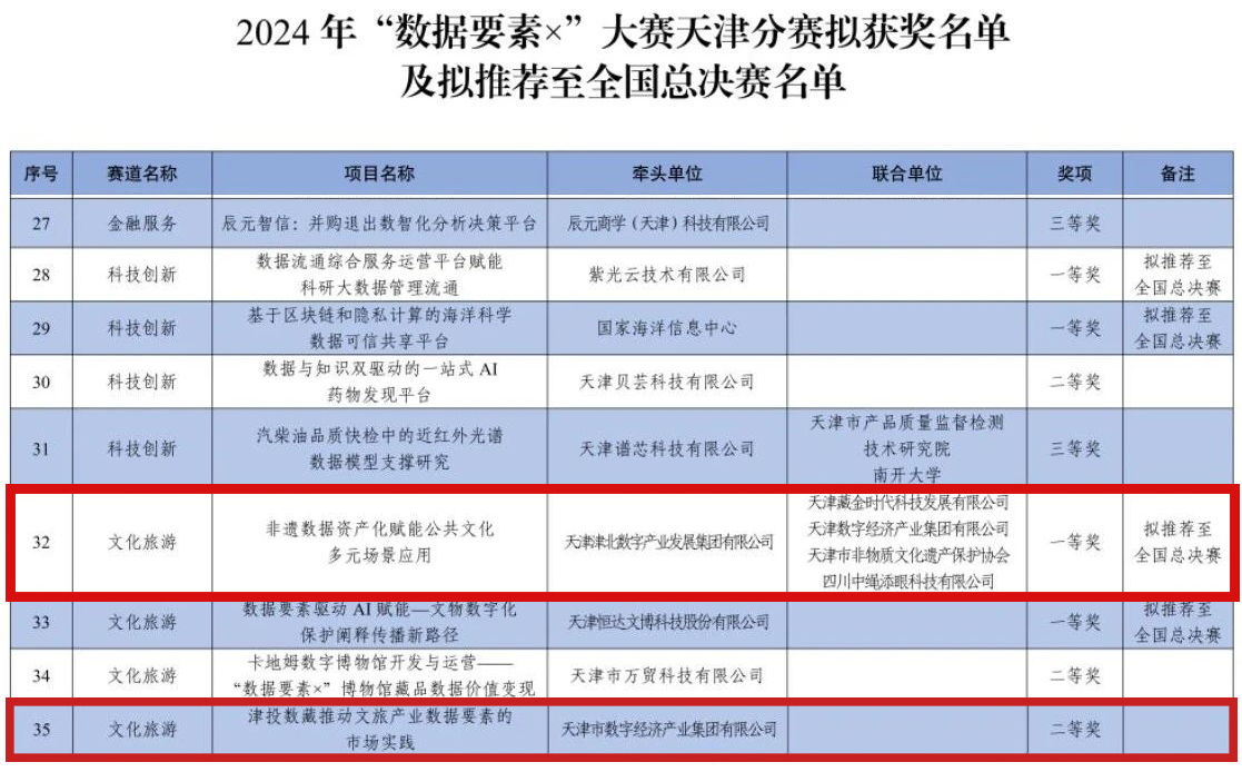 津投數藏榮獲2024年“數據要素×”大賽天津分賽一、二等獎
