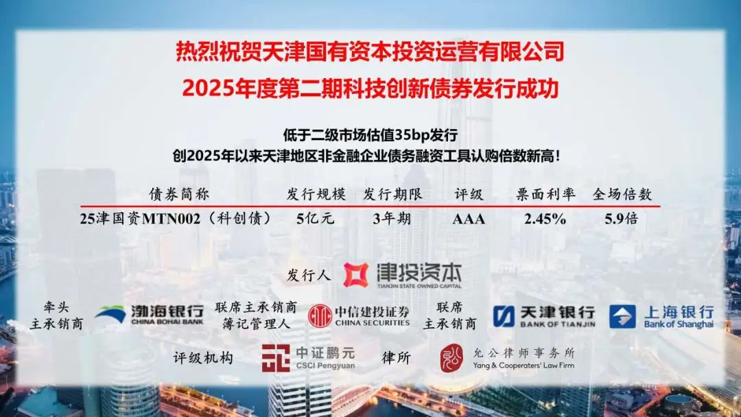 津投資本2025年度第二期科技創(chuàng )新債券成功發(fā)行